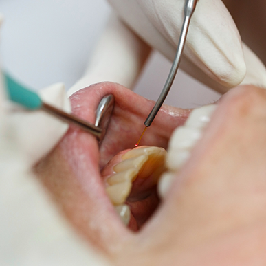 Our experienced team may also recommend laser therapy. Our cutting-edge dental laser uses specific wavelengths of light to target and eliminate harmful bacteria below your gumline, decontaminating your gingival pockets. Laser therapy has been shown to lower the risk of bleeding, gum inflammation, and recession, and even tooth loss.